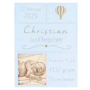 Fødselstavle lysblå m foto