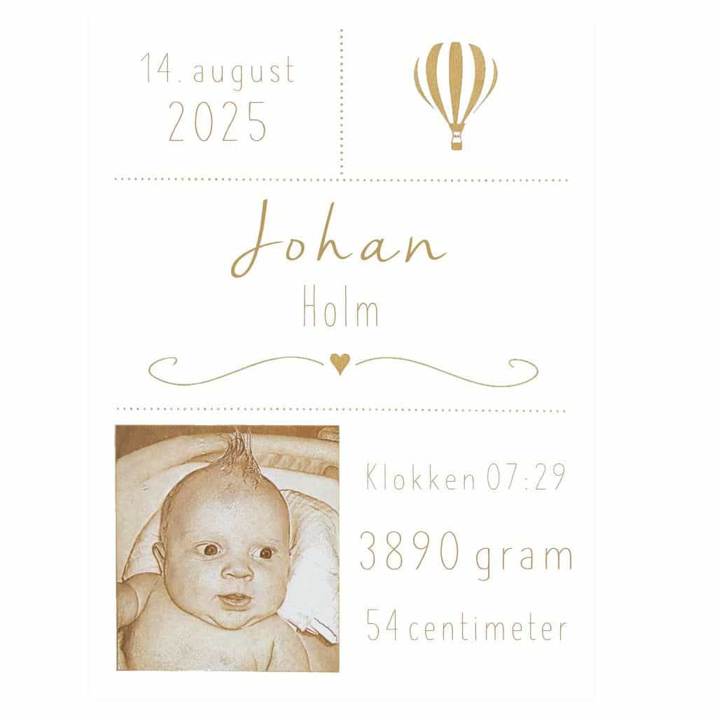 Fødselstavle hvid m foto